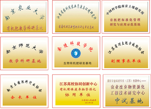 我公司已與南京農(nóng)業(yè)大學(xué)、江蘇省農(nóng)業(yè)科學(xué)院、南京師范大學(xué)、中科院南京土壤研究所等科研院校簽有長期的合作研發(fā)協(xié)議,為產(chǎn)品研發(fā)提供了強有力的技術(shù)保證,是南京農(nóng)業(yè)大學(xué)教學(xué)科研基地、江蘇省農(nóng)科院新型肥料研發(fā)中試基地、中科院南京土壤研究所有機肥標(biāo)準(zhǔn)化管理研究與應(yīng)用示范基地、國家農(nóng)業(yè)科技華東(江蘇)創(chuàng)新中心—農(nóng)業(yè)廢棄物資源化工程技術(shù)研究中心中試基地、江蘇省測土配方協(xié)會副理事長單位、南京土壤肥料行業(yè)協(xié)會會長單位、江蘇省商品有機肥推廣應(yīng)用定點生產(chǎn)企業(yè)、南京市測土配方施肥首批定點企業(yè)、江蘇高校協(xié)同創(chuàng)新中心有機固體廢棄物資源化協(xié)同單位、南京市農(nóng)業(yè)產(chǎn)業(yè)化重點龍頭企業(yè)。
